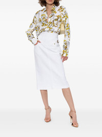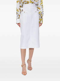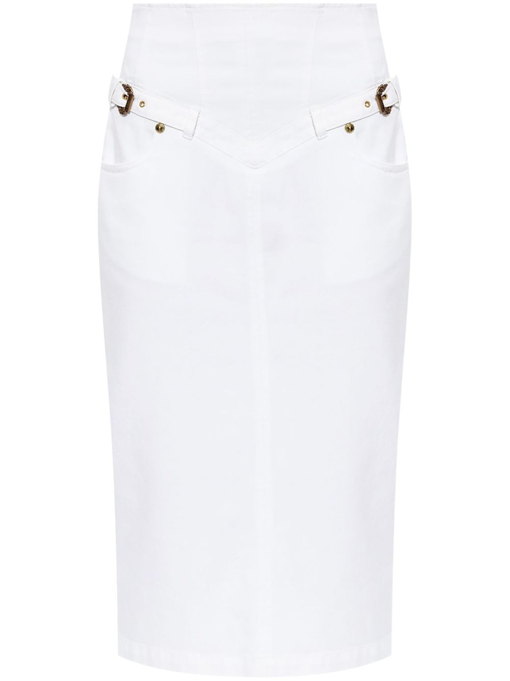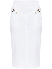 cotton midi skirt Highlights - White - Rear zip fastening - Two side slit pockets - Decorative buckle detailing - Rear slit Made in Italy Composition Cotton 99%, Elastane 1%