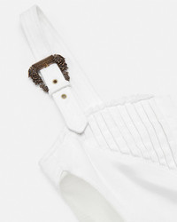 DETAILS This cottondenim midi dress is detailed with cutout mesh inserts and Baroque Buckle accents on the shoulder straps - Baroque Buckle hardware - Sleeveless - Adjustable shoulder straps - Back zip closure - Back vent - Outer composition 1: 99% Cotton, 1% Elastane - Outer composition 2: 87% Nylon, 13% Elastane Item: E78HAO951-EEW015TC2_E003