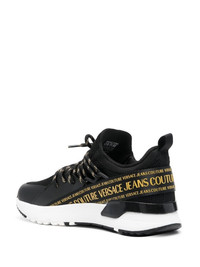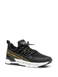 logo-tape low-top sneakers Versace Jeans Couture showcases their signature maximalism with these sneakers. Logo-tape detailing is paired with contrasting graphics and a panelled design for a bold finish. Imported Composition Leather 100% SIZE & FIT Measurement HEEL 1.57 in(4 cm) Sole height 0.59 in(1.5 cm)