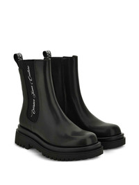 elastic-insert platform boots Highlights - Black - Leather upper - Platform sole - Elastic side inserts - Round toe - Pull-on style Imported Composition Sole: Rubber 100% Outer: Calf Leather 100%, Fabric 100% Lining: Fabric 100%, Calf Leather 100%