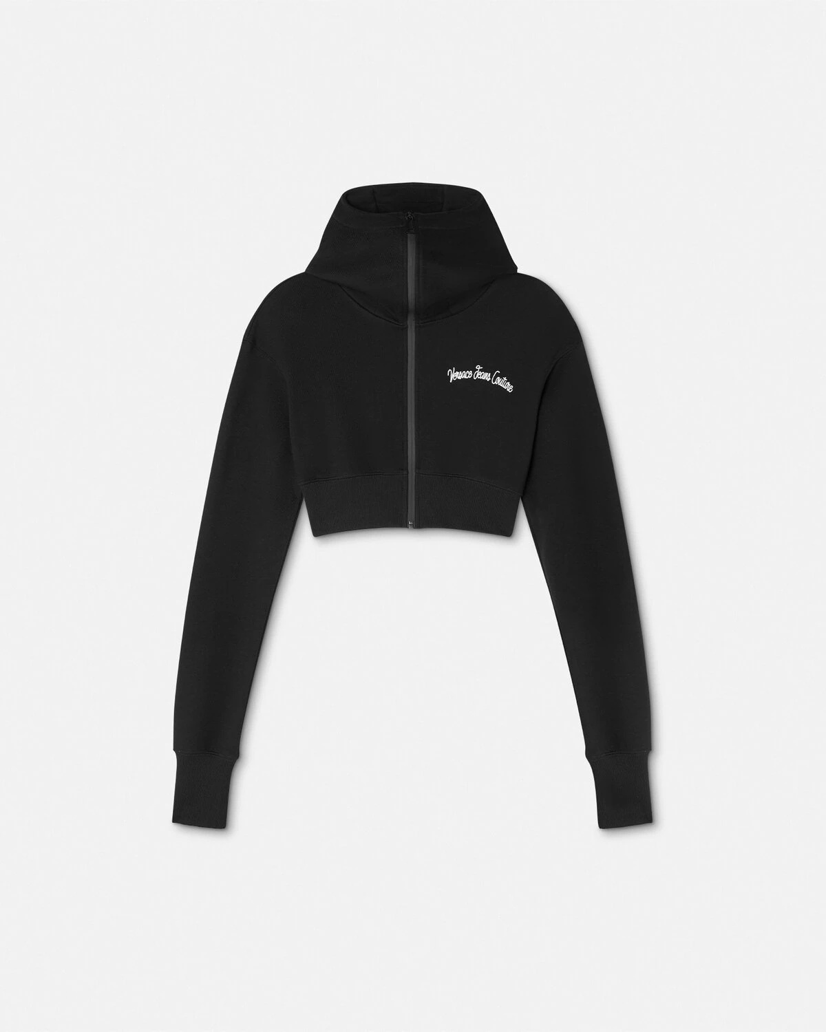 DETAILS This cropped zip hoodie is crafted from cotton jersey and features a cursive Institutional Logo embroidery at the chest - Institutional Logo embroidery - Front zip closure - Long sleeves - High neck - Ribbed trims - Outer composition 1: 100% Cotton - Outer composition 2: 95% Cotton, 5% Elastane Item: E78HAIC08-ECF00C_E899
