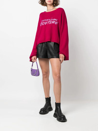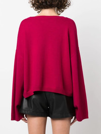 embroidered-logo wide-sleeve jumper dark pink wool blend embroidered logo to the front round neck long wide sleeves straight hem Imported Composition Wool 80%, Polyamide 20% SIZE & FIT Model measurements Height 5 ft 9 in(1.76 m) Bust/Chest 33.07 in(84 cm) Hips 34.64 in(88 cm) Waist 25.59 in(65 cm) FittingInformation This piece fits true to size. We recommend you get your regular size Cut for a loose fit Made with a mid-weight fabric Washing instructions Hand Wash