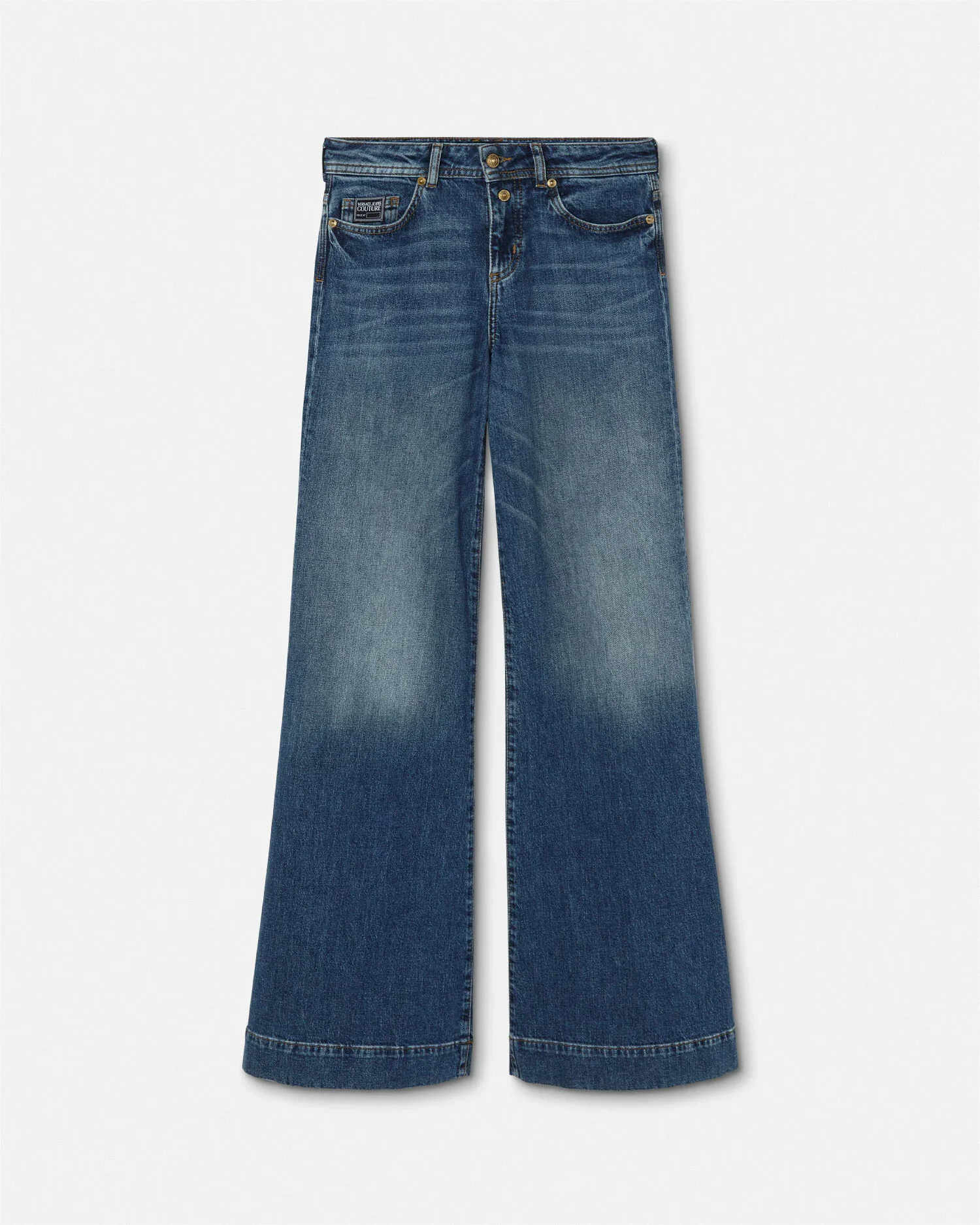 DETAILS These low-waist flared jeans feature a Piece Number logo detail at the front and a V-Emblem logo patch at the back. The five-pocket design is complete with an Institutional logo accent at the back. - Piece Number logo - V-Emblem logo patch - V-Emblem hardware - Institutional logo - Snap-button closure - Front button and zip closure - Belt loops - Five-pocket design - Outer composition: 99% Cotton, 1% Elastane Item: E76HAB561-ECDW97_E904 SIZE & FIT - The model is 5'10" tall and wears size 26 - All sizes fit Italian standards