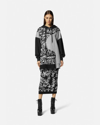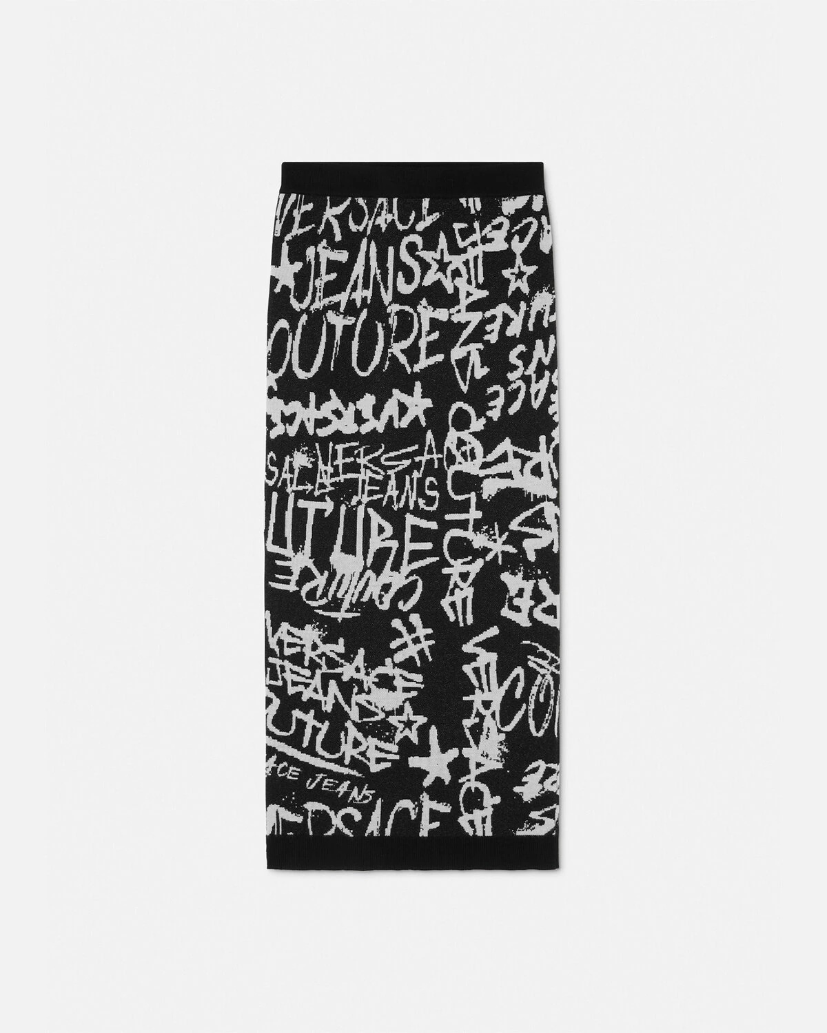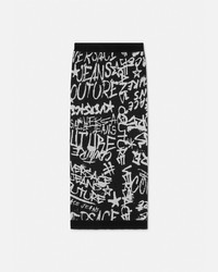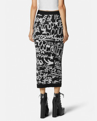 DETAILS This knit midi skirt features a jacquard Graffiti pattern with metallic lurex threading and an elasticized waistband - Graffiti print - Elasticized waistband - Outer composition 1: 67% Viscose, 22% Nylon, 11% Metallized Polyester - Outer composition 2: 100% Wool Item: E75HAEM26-ECM27N_EA0E SIZE & FIT - The model is 5'8" tall and wears size 40 - All sizes fit Italian standards