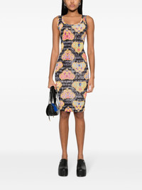 Heart-Couture-print jersey dress Versace Jeans Couture's love for maximalist patterns is illustrated by the Heart Couture print. Decorating this midi piece, it combines the brand's logo with jewel-inspired motifs. Highlights - Black/multicolour - Stretch-jersey - Heart couture print - All-over logo print - Gold-tone logo lettering to the rear - Scoop neck - Scoop back - Sleeveless - Straight hem - Unlined Made in Italy Composition Viscose 91%, Elastane 9% SIZE & FIT Model measurements Height 5 ft 11 in(1.8 m) Bust/Chest 35.03 in(89 cm) Hips 35.03 in(89 cm) Waist 23.62 in(60 cm) FittingInformation Designed for a close fit throughout Made from a midweight stretch fabric, this piece offers elasticity and flexibility when worn This piece fits true to size – take your usual size Washing instructions Machine Wash