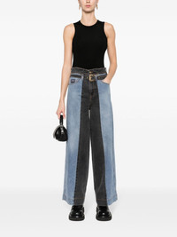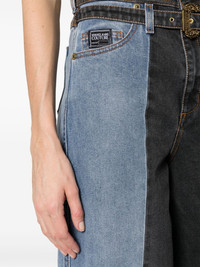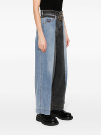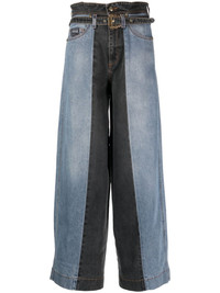 high-rise wide-leg jeans Highlights - Blue/grey - Cotton blend - Washed denim - Two-tone design - Contrast stitching - Applique logo - Belt loops - Concealed fly and button fastening - Front buckle fastening - High-waisted - Wide leg - Two rounded pockets to the sides - Four rear patch pockets Made in Italy Composition Cotton 89%, Polyamide 9%, Elastane 2% SIZE & FIT Model measurements Height 5 ft 9 in(1.76 m) Bust/Chest 33.07 in(84 cm) Hips 34.64 in(88 cm) Waist 25.59 in(65 cm) FittingInformation Designed with a wide leg cut, these jeans allow for a close fit at the waist and offer a loose and roomy fit over the leg Constructed from stretch denim, this piece offers a stretch fit with durability This piece fits true to size – take your usual size