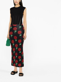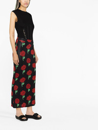high-waisted floral-print skirt Taking a creative approach to design, this high-waisted skirt from Versace Jeans Couture features an all-over motif print depicting roses. Constructed from sophisticated materials, the garment has a simultaneously refined feel. Highlights - Black - High waist - All-over floral print - Straight hem Made in Italy Composition Outer: Viscose 96%, Spandex/Elastane 4% Lining: Polyamide 100% SIZE & FIT Model measurements Height 5 ft 10 in(1.77 m) Bust/Chest 32.67 in(83 cm) Hips 35.43 in(90 cm) Waist 23.62 in(60 cm) FittingInformation This midi-length skirt is intended to be worn high on the waist The elasticated waist allows for a comfortable fit This piece fits true to size – take your usual size