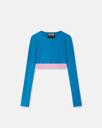 DETAILS This longsleeved lycra crop top has a satin finish and an elastic waistband with a debossed Institutional Logo motif - Institutional Logo debossing - Long sleeves - Crewneck - Elastic waistband - Outer composition: 80% Nylon, 20% Elastane Item: E79HAH218-EN0008_E296
