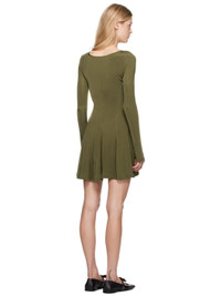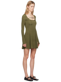 Stretch viscose jersey dress. · Scoop neck · Strap with logo hardware at chest · Princess seams at front and back · Flared hem · Thumbhole at cuffs · Fully lined Supplier color: Olive Body: 91% viscose, 9% elastane. Lining: 100% polyamide. Made in Albania 242202F052003