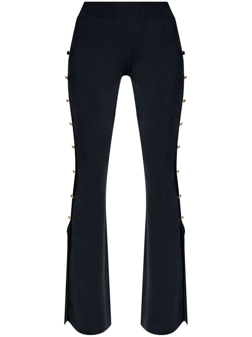 knitted trousers Highlights - Black - Knitted construction - Elasticated waistband - High-waisted - Stretch-design Imported Composition Viscose 72%, Polyamide 28%