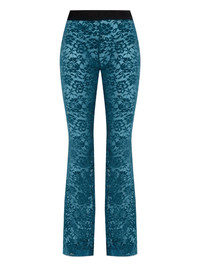 lace flared trousers Highlights - Teal blue - Floral lace - Flared hem - Elasticated waistband Imported Composition Polyester 95%, Spandex/Elastane 5% Washing instructions Read Manufacturer Guidelines