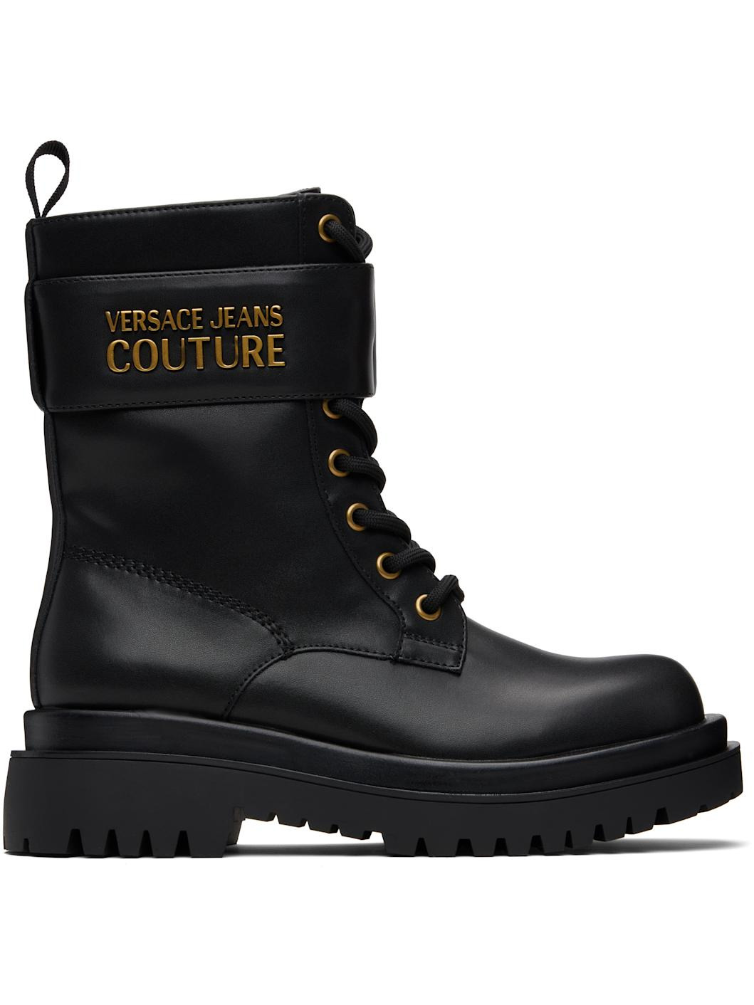 Ankle-high buffed faux-leather boots. · Lace-up closure · Velcro strap at vamp · Logo hardware at outer side · Zip closure at inner side · Pull-loop at heel collar · Jersey lining · Treaded rubber sole Supplier color: Black Upper: synthetic. Sole: rubber. Made in China 252202F113002