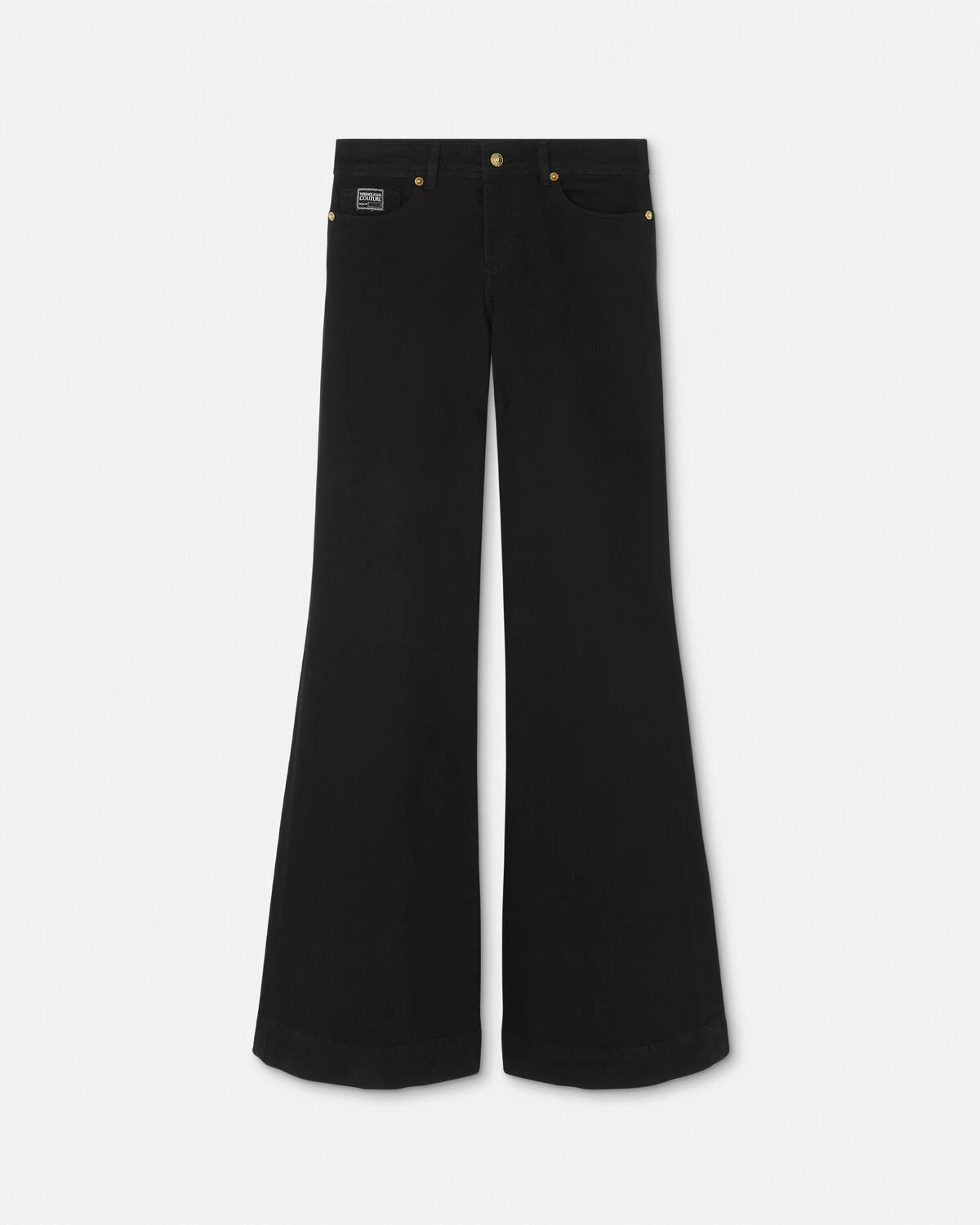 DETAILS Lowwaist flared bell jeans featuring an embroidered gothic logo with bead embellishments on the back pocket - Logo motif - Piece Number label - Bead embellishments - Front button and zip closure - Belt loops - Five-pocket design - Outer composition: 98% Cotton, 2% Elastane Item: E77HAB506-ECDW00_E909 SIZE & FIT - The model is 5'9" / 1.81 m tall and wears size 26 IT