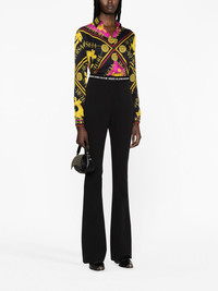 Logo Couture-print shirt Keeping with Versace Jeans Couture’s propensity for statement prints, this shirt is decorated with the iconic Logo Couture print, with twirling vines and lettering. Highlights - Black/multicolour - Signature logo couture print - Classic collar - Concealed front button fastening - Long sleeves - Straight hem Made in Italy Composition Viscose 100% SIZE & FIT Model measurements Height 5 ft 11 in(1.8 m) Bust/Chest 34.25 in(87 cm) Hips 35.82 in(91 cm) Waist 24.8 in(63 cm) FittingInformation Designed to be unstructured, offering a loose fit throughout Made from a lightweight non-stretch fabric This piece fits true to size – take your usual size