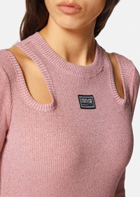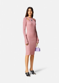 Ribbed-knit with lurex metallic threading, this long-sleeved midi dress has a crewneck and features a logo patch at the front with cut-out shoulders. DETAILS & CARE - Logo - Long sleeves - Crewneck - Slip-on - Outside: 80% Viscose, 11% Polyester, 9% Nylon - Do not wash - Do not bleach - Do not tumble dry - Cool iron on reverse with cloth on top - Delicate dry clean - Wash inside out SIZE & FIT - All sizes fit Italian standards