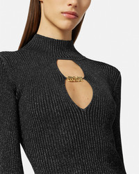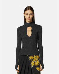 DETAILS This ribbed longsleeved turtleneck top features lurex threading and cutouts and is accented with Institutional logo hardware - Institutional logo hardware - Long sleeves - Mockneck - Lurex threading - Thumb holes - Outer composition: 58% Viscose, 38% Nylon, 4% Metallized Polyester Item: E75HAFM48-ECM27H_ES89 SIZE & FIT - The model is 5'8" tall and wears size S - All sizes fit Italian standards