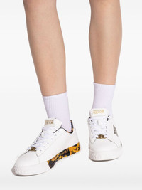 logo-detail sneakers Highlights - White - Floral print - Logo lettering - Lace-up fastening - Round toe - Gold-tone hardware Imported Composition Outer: Bovine Leather 100% Lining: Calf Leather 100% Sole: Rubber 100%