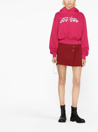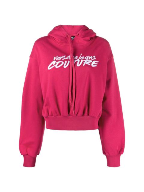 logo-embroidered cropped hoodie Versace Jeans Couture is the mainline label's younger sibling brand, which presents casual garments in line with Versace's bold branding style. Showcasing their work, this hoodie boasts a cropped silhouette that's instantly recognisable due to the contrasting logo at the chest. Imported Composition Cotton 100% SIZE & FIT Model measurements Height 5 ft 10 in(1.79 m) Bust/Chest 31.49 in(80 cm) Hips 35.03 in(89 cm) Waist 23.62 in(60 cm) FittingInformation This piece fits true to size. We recommend you get your regular size Cut for a loose fit Made with a mid-weight fabric Washing instructions Machine Wash