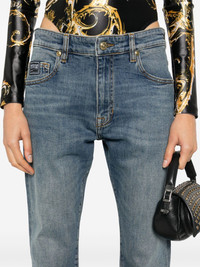 logo-embroidered slim-cut jeans Highlights - Medium blue - Stretch-cotton - Washed denim - Contrast stitching - Belt loops - Classic five pockets - Bead-embellished embroidered logo to the rear - Slim cut - Concealed fly and button fastening Imported Composition Cotton 99%, Spandex/Elastane 1% SIZE & FIT Model measurements Height 5 ft 9 in(1.76 m) Bust/Chest 31.88 in(81 cm) Hips 35.43 in(90 cm) Waist 24.8 in(63 cm) FittingInformation Designed for a slim fit, these jeans offer a close fit at the waist and sit just away from the leg Constructed from stretch denim, this piece offers a stretch fit with durability This piece fits true to size – take your usual size