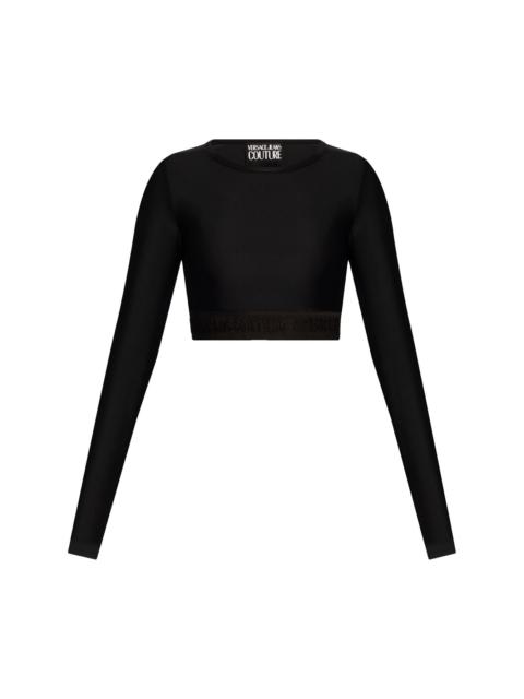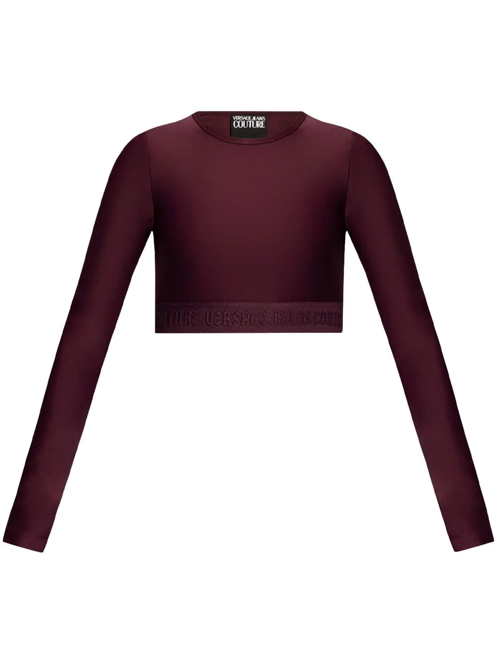 logo-hem cropped top Highlights - Burgundy - Stretch-design - Round neck - Long sleeves - Thumb slot - Logo print at the hem - Cropped Imported Composition Polyamide 80%, Elastane 20%