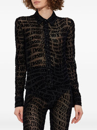 logo-lettering sheer shirt Highlights - Black - Sheer fabric - Velvet logo print - Collared neckline - Button fastening - Long sleeves Imported Composition Polyester 96%, Elastane 4% Washing instructions Read Manufacturer Guidelines