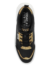 logo-patch glitter-detailing sneakers Highlights - Black - Leather - Smooth grain - Panelled design - Glitter detailing - Logo patch to the side - Logo-print tongue - Pull-tab at the heel - Round toe - Front lace-up fastening - Branded insole - Chunky rubber sole Imported Composition Leather 100% SIZE & FIT Measurement HEEL 2.75 in(7 cm)