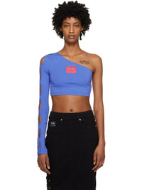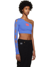 Blue Single-Shoulder Long Sleeve T-Shirt