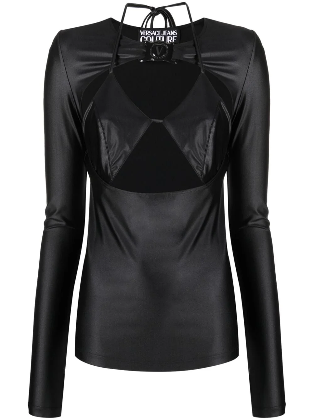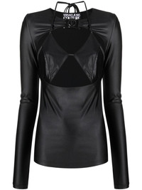 logo-plaque cut-out top Highlights - Jet black - Stretch-design - Tonal stitching - Tonal logo plaque - Cut-out detailing - Round neck - Long sleeves - Straight hem Imported Composition Polyamide 79%, Spandex/Elastane 21% SIZE & FIT Model measurements Height 5 ft 10 in(1.78 m) Bust/Chest 33.07 in(84 cm) Hips 36.61 in(93 cm) Waist 24.8 in(63 cm) FittingInformation Designed for a slim fit that sits just away from the body offering a close yet comfortable fit The tie fastening gives an adaptable and personalised fit Made from a midweight stretch fabric, this piece offers elasticity and flexibility when worn This piece fits true to size – take your usual size Washing instructions Hand Wash