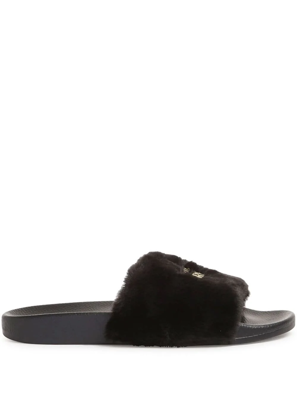 Shelly slides Highlights - Black - Faux-fur design - Embroidered logo to the front - Open toe - Branded footbed - Flat rubber sole Imported Composition Lining: Rubber 100% Sole: Rubber 100% Outer: Artificial Fur 100%
