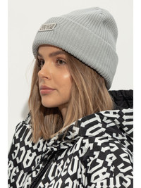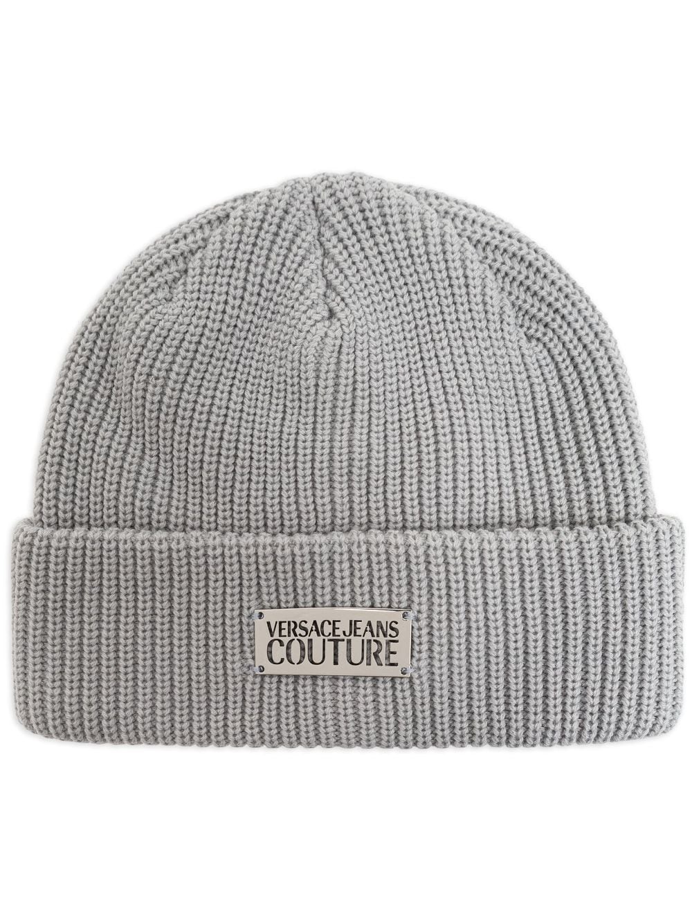 logo-plaque knitted beanie Highlights - Grey - Knitted construction - Silver-tone logo plaque - Round crown - Folded edge - When buying this unisex item, keep in mind that it is graded in standard men's sizing. Imported Composition Polyester 60%, Acrylic 40%