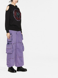 logo-print cotton hoodie Versace Jeans Couture showcases its fondness for loud graphics and deconstructed details in this hoodie. The bold logo print decorates the front of this cotton piece, while the shoulders are accented with cutouts. Imported Composition Cotton 100% SIZE & FIT Model measurements Height 5 ft 10 in(1.77 m) Bust/Chest 31.49 in(80 cm) Hips 35.03 in(89 cm) Waist 23.22 in(59 cm) Measurement LENGTH 24.8 in(63 cm) BUST 39.37 in(100 cm) FittingInformation This piece fits true to size. We recommend you get your regular size Cut for a loose fit Made with a mid-weight fabric Washing instructions Machine Wash