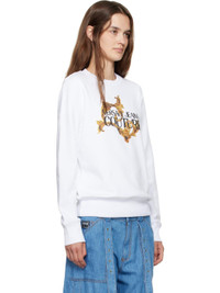 French terry sweatshirt. · Rib-knit crewneck, hem, and cuffs · Logo graphic with crystal-cut accents at front Supplier color: White/Gold 100% cotton. Made in Turkey 252202F098006