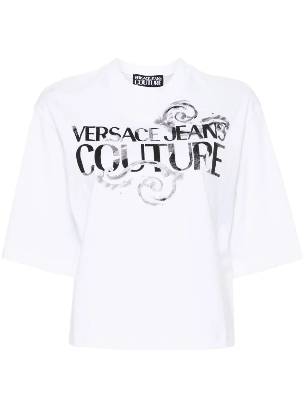 logo-print cotton T-shirt Highlights - White - Cotton - Soft jersey - Crew neck - Drop shoulder - Logo print to the front - Signature barocco print - Short sleeves - Straight hem - Pull-on style Imported Composition Cotton 100% SIZE & FIT Model measurements Height 5 ft 10 in(1.77 m) Bust/Chest 32.28 in(82 cm) Hips 35.03 in(89 cm) Waist 25.19 in(64 cm) FittingInformation Designed for a relaxed fit, this piece allows for comfort and movement when worn Made from a midweight non-stretch fabric, this piece offers minimal elasticity when worn This piece fits true to size – take your usual size Washing instructions Machine Wash