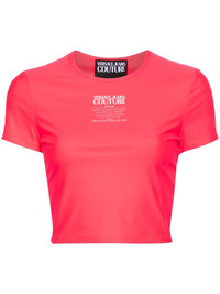 logo-print cropped T-shirt Highlights - Neon pink - Technical jersey - Stretch-design - Lightweight - Round neck - Contrasting logo print to the front - Short sleeves - Cropped - Straight hem - Pull-on style Imported Composition Polyamide 78%, Spandex/Elastane 22% SIZE & FIT Model measurements Height 5 ft 10 in(1.77 m) Bust/Chest 32.28 in(82 cm) Hips 35.03 in(89 cm) Waist 25.19 in(64 cm) Measurement SLEEVE LENGTH 5.11 in(13 cm) LENGTH 15.74 in(40 cm) BUST 29.92 in(76 cm) FittingInformation Designed for a slim fit that sits just away from the body offering a close yet comfortable fit Made from a lightweight stretch fabric, this piece offers elasticity and flexibility when worn This piece fits true to size – take your usual size Washing instructions Machine Wash