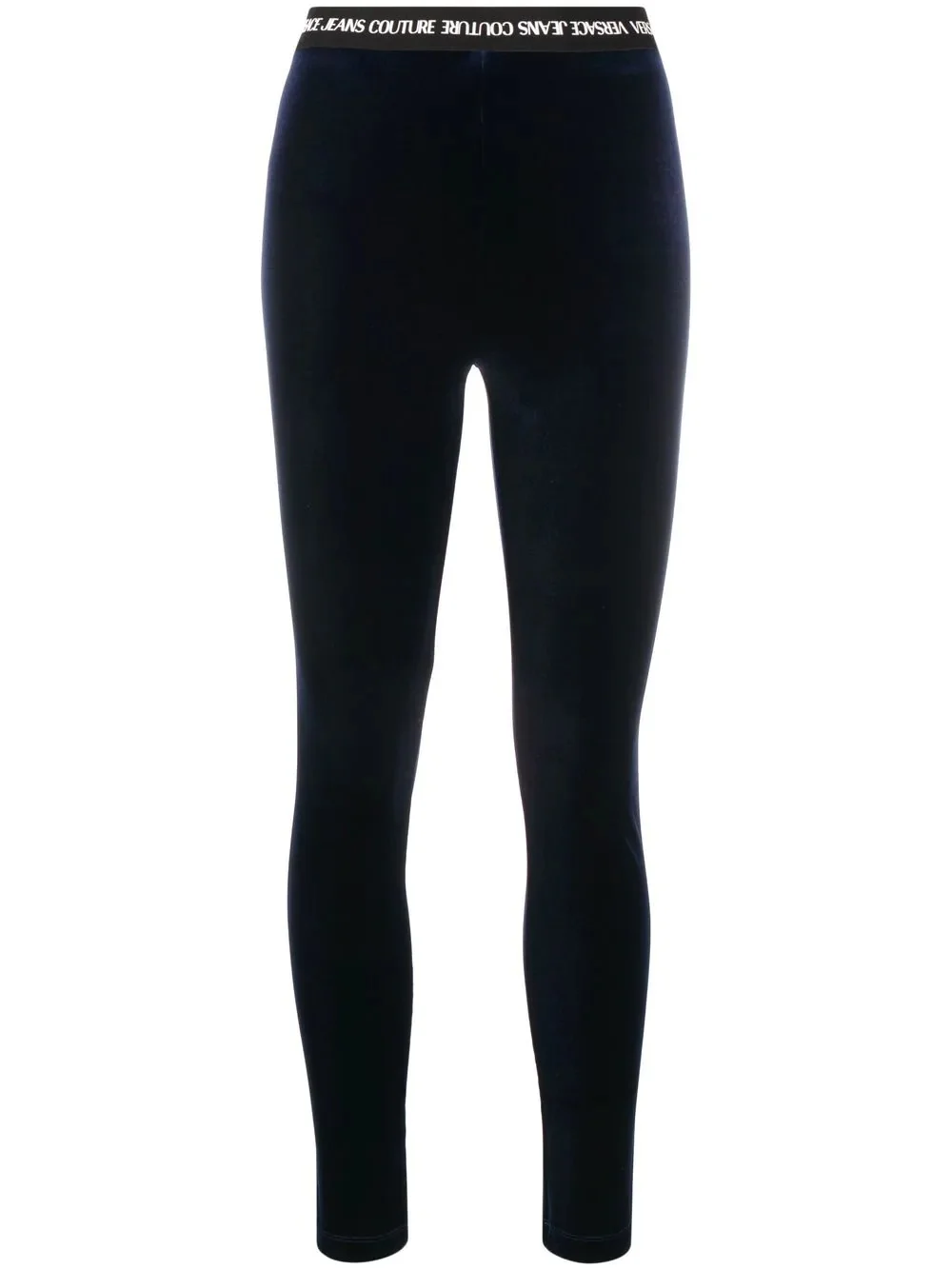 logo-waistband velvet leggings Versace Jeans Couture highlights the brand's streetwear-inspired style on this pair of leggings through logo-tape detailing at the elasticated waistband. This ties in with contemporary branding trends in an effortless way. Imported Composition Polyester 90%, Spandex/Elastane 10% Washing instructions Machine Wash