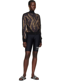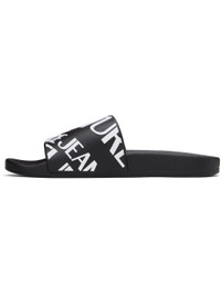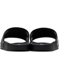 Rubber pool slides in black. · Open toe · Logo embossed at vamp · Logo printed at molded footbed · Treaded rubber sole Supplier color: Black