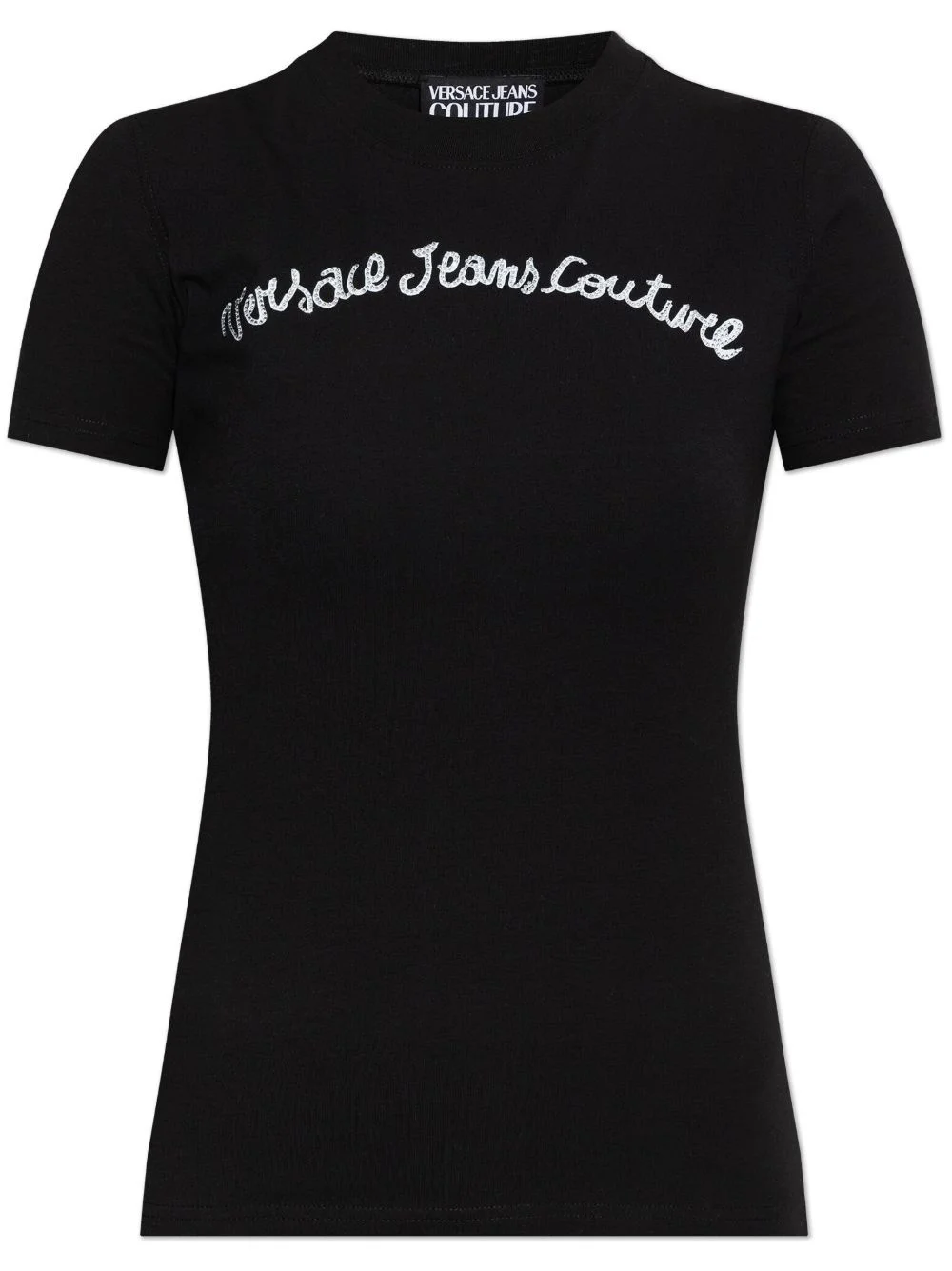 logo-print T-shirt Highlights - Black - Crystal embellishment - Crew neck - Short sleeves Imported Composition Cotton 92%, Elastane 8%