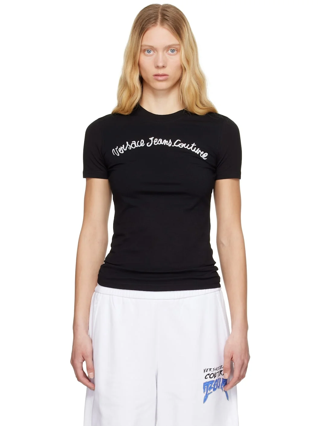 Stretch cotton jersey T-shirt. · Rib-knit crewneck · Logo printed and crystal-cut at chest Supplier color: Black 92% cotton, 8% elastane. Made in Turkey 251202F110008
