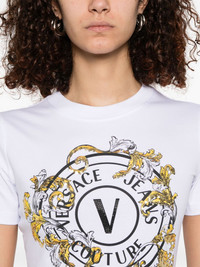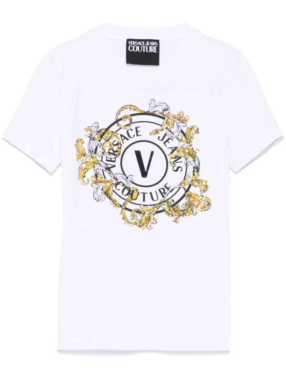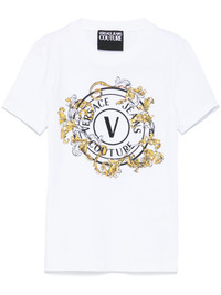 logo-print T-shirt Highlights - White - Sequin embellishment - Crew neck - Short sleeves Imported Composition Cotton 92%, Elastane 8% SIZE & FIT Model measurements Height 5 ft 10 in(1.79 m) Bust/Chest 31.88 in(81 cm) Hips 35.43 in(90 cm) Waist 23.62 in(60 cm) FittingInformation Designed for a close fit throughout Made from a midweight stretch fabric, this piece offers elasticity and flexibility when worn