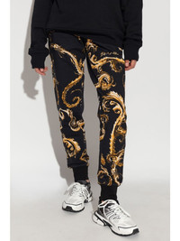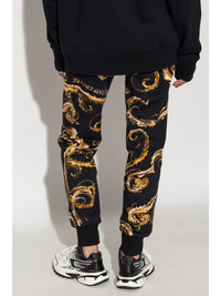 logo print track pants Highlights - Black/gold-tone - Cotton - Jersey texture - Chromo couture print - Elasticated drawstring waistband - Elasticated cuffs - Slip pockets to the sides Imported Composition Cotton 100%