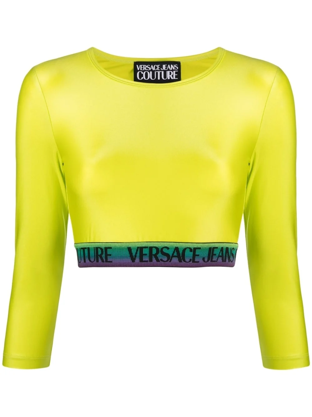 logo-trim detail top lime green cropped logo trim round neck three-quarter length sleeves Made in Italy Composition Polyamide 79%, Elastane 21% SIZE & FIT Model measurements Height 5 ft 10 in(1.79 m) Bust/Chest 31.1 in(79 cm) Hips 35.03 in(89 cm) Waist 24.01 in(61 cm) Washing instructions Machine Wash