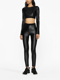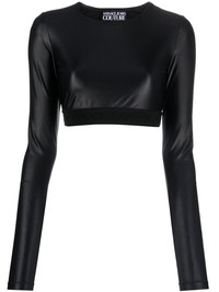 logo-underband crop top This Versace Jeans Couture crop top channels outer space thanks to its stretchy lustrous fabric. A logo underband frames the piece in an unmistakable fashion. Highlights - Black - Logo underband - Stretch-design - Round neck - Long sleeves - Straight hem - Cropped Imported Composition Polyamide 79%, Elastane 21% SIZE & FIT Model measurements Height 5 ft 10 in(1.78 m) Bust/Chest 31.49 in(80 cm) Hips 35.03 in(89 cm) Waist 23.62 in(60 cm) FittingInformation Designed for a close fit throughout Made from a lightweight stretch fabric, this piece offers elasticity and flexibility when worn This piece fits true to size – take your usual size