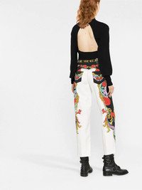 logo-waistband detail trousers multicolour cotton logo waistband baroque-pattern print logo patch to the front belt loops front button and zip fastening classic five pockets Imported Composition Outer: Cotton 97%, Spandex/Elastane 3% Lining: Polyester 65%, Cotton 35% SIZE & FIT Model measurements Height 5 ft 10 in(1.78 m) Bust/Chest 31.49 in(80 cm) Hips 35.43 in(90 cm) Waist 24.4 in(62 cm) FittingInformation This piece fits true to size. We recommend you get your regular size Designed to be fitted at the waist and hips, loose over the leg Made with a mid-weight stretch fabric Washing instructions Machine Wash