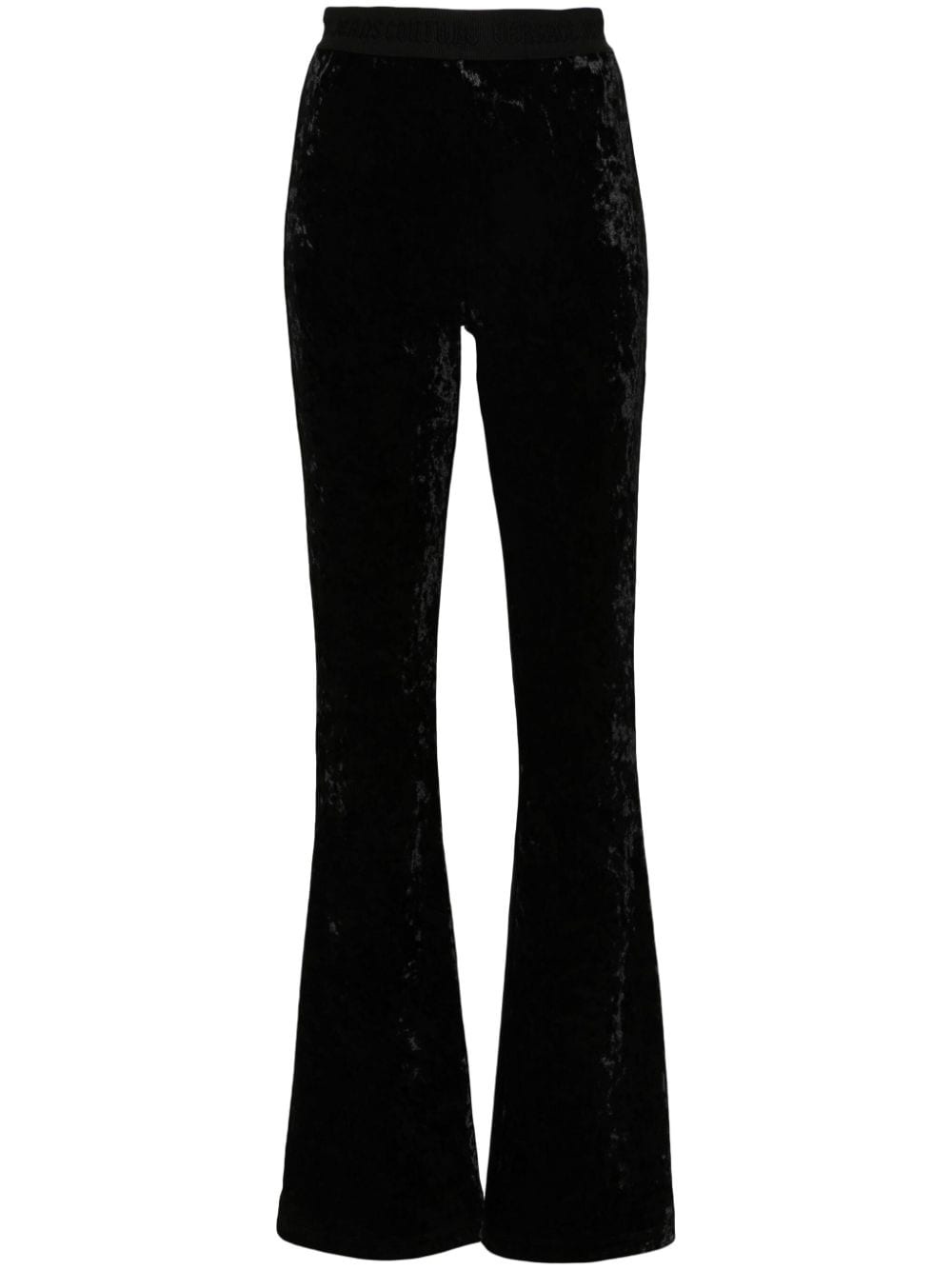 logo-waistband trousers Highlights - Black - Velvet - Elasticated logo waistband - Wide leg - Pull-on style Made In Italy Composition Polyester 95%, Spandex/Elastane 5% SIZE & FIT Model measurements Height 5 ft 9 in(1.74 m) Bust/Chest 34.64 in(88 cm) Hips 36.61 in(93 cm) Waist 26.37 in(67 cm)