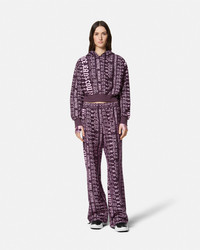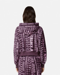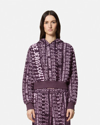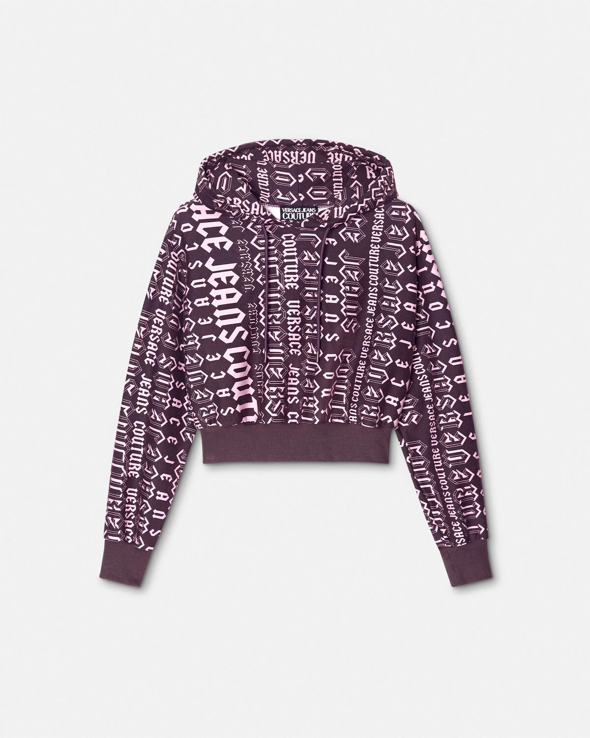DETAILS A cropped cotton-jersey hooded sweatshirt featuring all-over gothic logo lettering. - Logomania print - Long sleeves - Drawstring hood - Elastic waistband and cuffs - Outer composition 1: 100% Cotton - Outer composition 2: 95% Cotton, 5% Elastane Item: E77HAI314-EFS172_ER06 SIZE & FIT - The model is 5'9" / 1.81 m tall and wears size S
