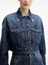 metallic-print denim jacket Highlights - Dark blue - Metallic print - Cropped - Button fastening - Pointed collared - Long sleeves Made in Italy Composition Outer: Cotton 100% Lining: Polyester 100% Washing instructions Read Manufacturer Guidelines