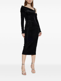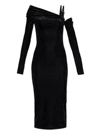 off-shoulder buckle midi dress Highlights - Black - Off-shoulder design - Long sleeves - Buckle detail - Midi length - Ribbed texture Made in Italy Composition Polyester 100% Washing instructions Read Manufacturer Guidelines