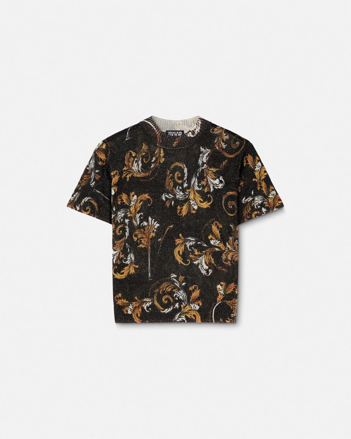 DETAILS A light knit Tshirt with lurex threading throughout featuring an Outline Barocco print - Outline Barocco print - Piece Number Logo tag - Short sleeves - Mock neckline - Ribbed trims - Outer composition: 90% Viscose, 10% Polyester Item: E78HAFM07-ECMN45_EG89