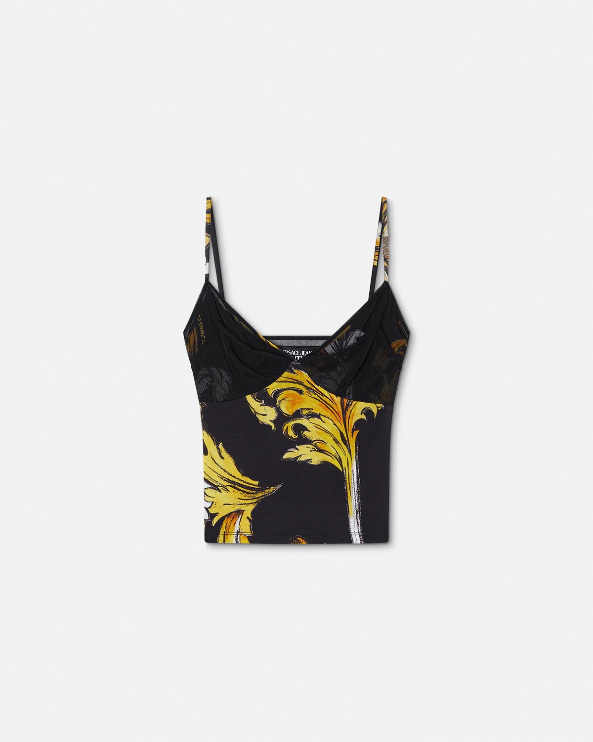 DETAILS This fluid top in the Outline Barocco print features a doublelayered mesh detailing at the bust and accent Institutional Logo hardware on one shoulder strap - Outline Barocco print - Institutional Logo hardware - Sleeveless - Shoulder straps - V-neckline - Mesh detailing - Outer composition 1: 90% Viscose, 10% Elastane - Outer composition 2: 82% Nylon, 18% Elastane Item: E78HAM212-EJS471_EG89