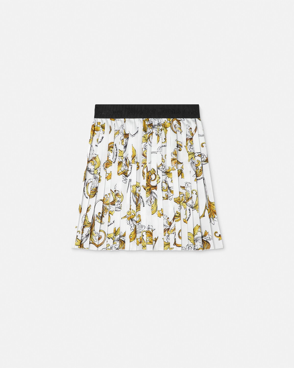DETAILS This twill pleated mini skirt features an allover Outline Barocco print and a jacquard logo on the elastic waistband - Outline Barocco print - Logo motif - Elastic waistband - Pleated - Outer composition: 100% Polyester Item: E78HAE820-ENS574_EG03